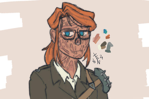 Avery is a ghoul that worked as a librarian and an astronomist before the Great War. She is still endeared by both words and space, and likes to spend her down-time reading or stargazing at night.She is well-known in Diamond City, as he used to hold lessons in the Science! center about space and astronomy for the kids of Diamond City. They stopped visiting Diamond City after McDonough's anti-ghoul decree.Avery met Mokushi in 2268 when she was visiting the Science! center one day. He had seen her around the Diamond City market with a reserved man that none of the other residents knew very much about. Mokushi told Avery about him, and that she didn't like him very much. Avery offered to help her get away from him and she was very eager at the opportunity.The two of them left Diamond City to get away from Kellogg, but he eventually tracked them down to try to take Mokushi back. Avery ended up fighting and killing Kellogg to keep Mokushi safe, and the two of them explored the Commonwealth together.Years later, after Mokushi grew up, Avery became the General of the Minutemen. While Mokushi worked as a traveling doctor, Avery stayed at the Castle with Preston Garvey to direct the Minutemen and respond whenever people needed help. He occasionally joined Mokushi on a caravan trip when she would stop by the Castle.It was on one of these caravan trips - while visiting far south near Somerville Place - that Avery ended up turning into a feral ghoul and tried to attack Mokushi. Mokushi had to kill him to prevent him from hurting her. She brought the news back to Preston and the Minutemen at the Castle, and they sent a group to retrieve Avery's body for a proper burial.